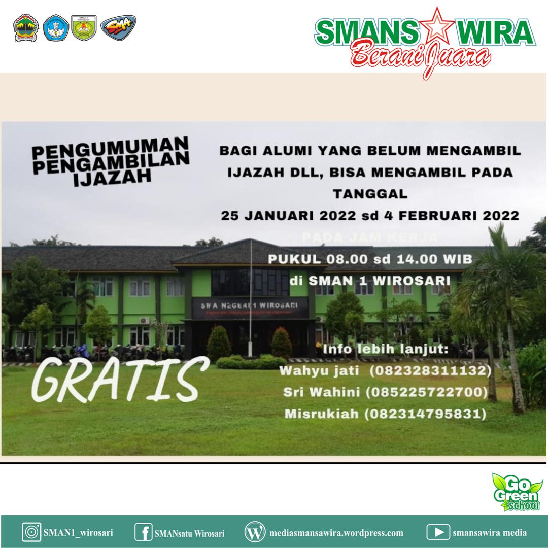 Bagi alumni SMAN 1 Wirosari yang merasa belum mengambil Ijazahnya ayo segera buruan diambil di SMAN 1 Wirosari Kabupaten Grobogan mumpung masih ada wa...